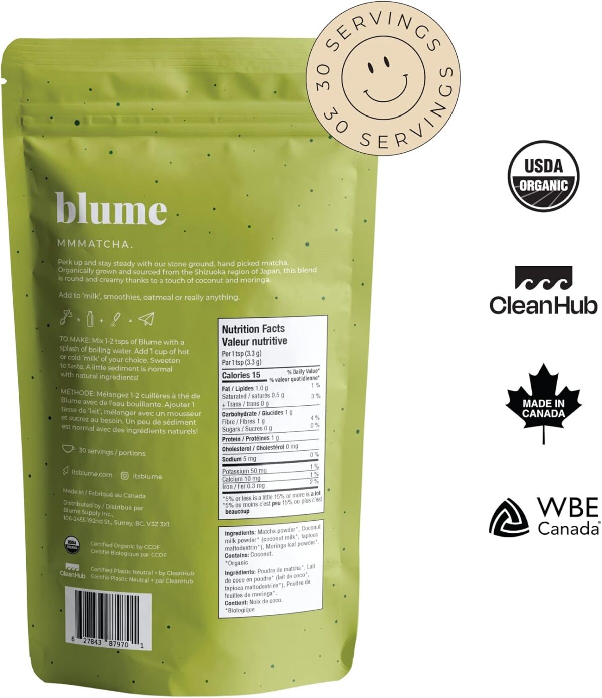 Blume Superfoods Latte – Matcha Powder with Coconut, Natural Caffeine